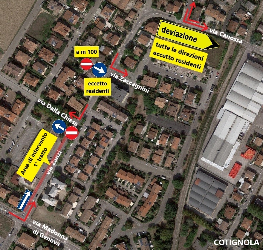 provinciale Madonna di Genova e via Canossa, e la stessa via Canossa, nel tratto fino