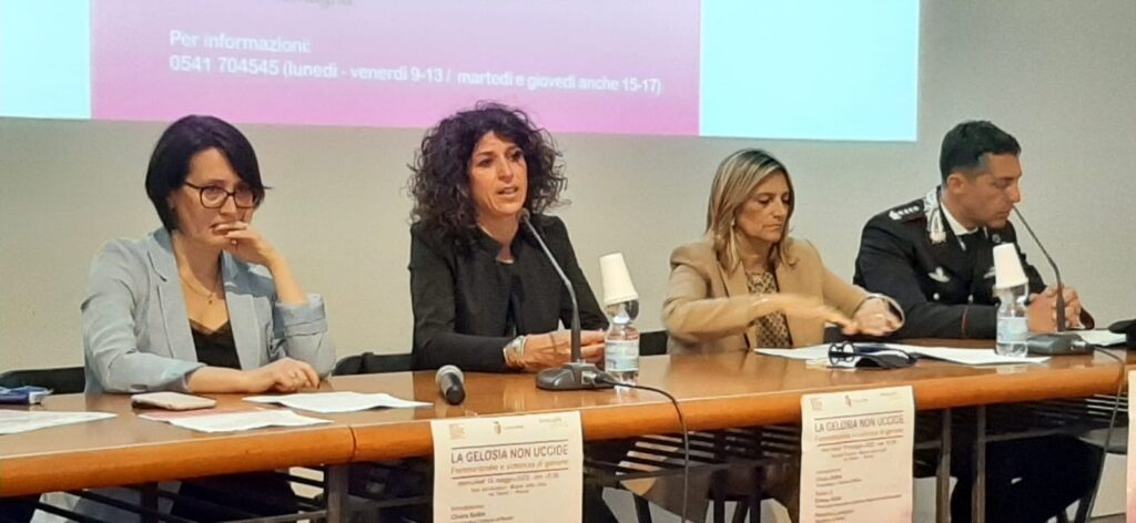 Si è svolto ieri pomeriggio nella sala del giudizio del Museo della città l’incontro pubblico“La gelosia non uccide. Femminicidio e violenza di genere” organizzato dal Comune di Rimini insieme a Rete donne Rimini e Casa delle donne. All’ incontro, introdotto dalla Vicesindaca con delega alle politiche di genere del Comune di Rimini,Chiara Bellini, hanno partecipato Emma Petitti, Presidente Assemblea Legislativa della Regione Emilia-Romagna, Rosanna Lavezzaro, Questora di Rimini, Mario La Mura, Comandante provinciale dei Carabinieri di Rimini. Tra i Relatori, hanno approfondito alcune tematiche più tecniche Elvira Ariano, di Rompi il Silenzio Onlus. Donato Piegari, referente dell’Associazione DireUomo – Spazio Ascolto Maltrattanti, ed Elisabetta Pillai, Responsabile Area Sociale interdipartimentale Dsdia Ausi della Romagna. Moderatrice dell’incontro, la giornalista Vera Bessone.