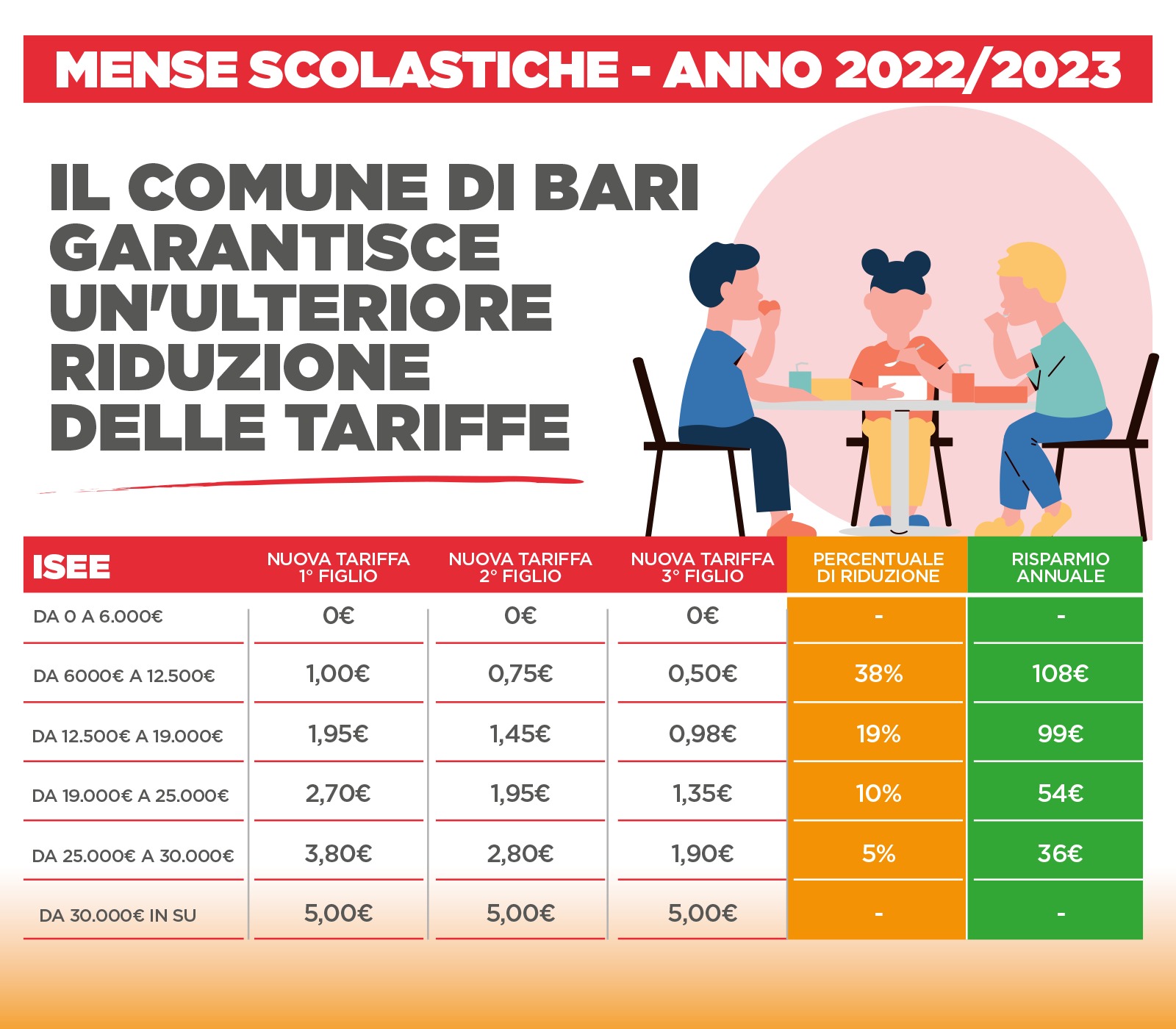 Pertanto, le nuove tariffe a carico degli utenti del servizio di mensa scolasticabiologica per l’anno scolastico 2022/023 risultano le seguenti (evidenziate in neretto):