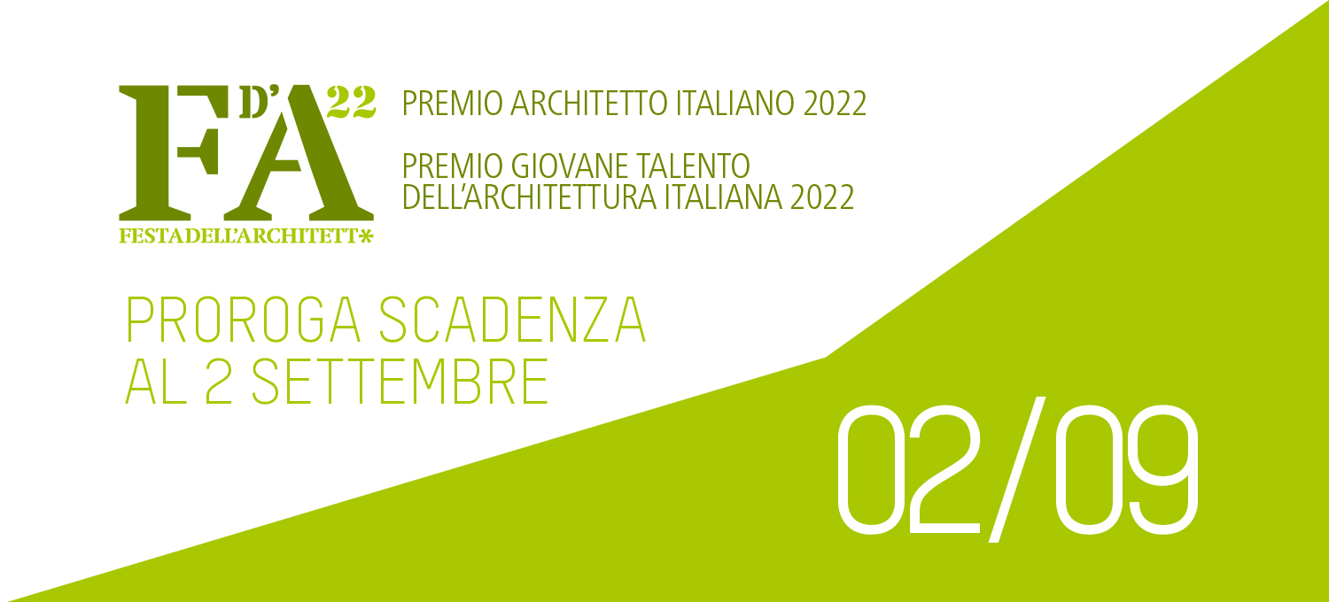 Roma, 27 luglio 2022. C’è tempo fino alle ore 12 del 2 settembre per presentare le candidature ai Premi Architetto/a Italiano/a e Giovane Talento dell’Architettura Italiana che il Consiglio Nazionale degli Architetti, Pianificatori, Paesaggisti e Conservatori (CNAPPC) bandisce annualmente in occasione della Festa dell’Architetto.