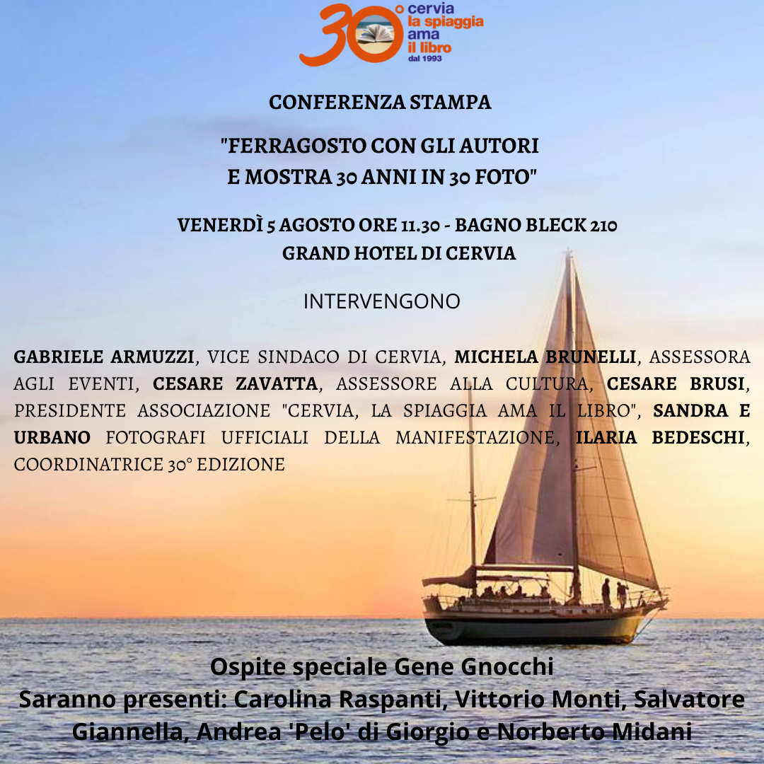 GABRIELE ARMUZZI, VICE SINDACO DI CERVIA, MICHELA BRUNELLI, ASSESSORA AGLI EVENTI, CESARE ZAVATTA, ASSESSORE ALLA CULTURA, CESARE BRUSI PRESIDENTE ASSOCIAZIONE “CERVIA LA SPIAGGIA AMA IL LIBRO”, SANDRA E URBANO FOTOGRAFI UFFICIALI DELLA MANIFESTAZIONE, ILARIA BEDESCHI, COORDINATRICE 30°a EDIZIONE