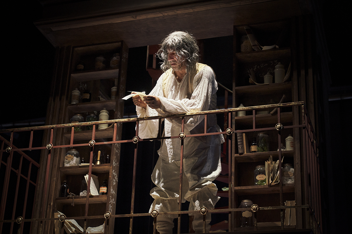 Il folto gruppo di attori – con Emilio Solfrizzi anche Lisa Galantini, Antonella Piccolo, Sergio Basile, Viviana Altieri, Cristiano Dessì, Cecilia D’Amico, Luca Massaro e Rosario Coppolino – con i costumi in stile di Santuzza Calì, si muovono attorno alla scenografia lignea a tre piani disegnata da Fabiana Di Marco, con le musiche di Massimiliano Pace. La produzione dello spettacolo è di Compagnia Moliere, La Contrada – Teatro Stabile di Trieste in collaborazione con Teatro Quirino – Vittorio Gassman.