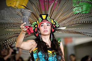 Iris Sanchez, director of Hispanic Serving Institution Initiatives at PNW, participates in a dance with the group Danzantes Aztecas.