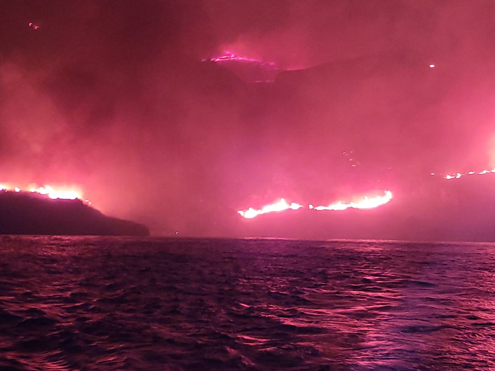 spiaggia e con il fuoco imperversante alle spalle, quindi partiva anche un gommone pneumatico dalla