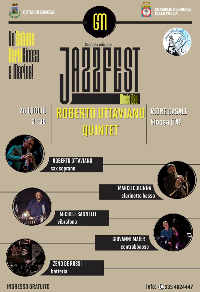 Nuovo appuntamento con la musica jazz a Ginosa nell’ambito della rassegna “JazzFest’’, rientrante nel calendario degli eventi estivi del Comune di Ginosa “VertiGinosaeMarina’’.
