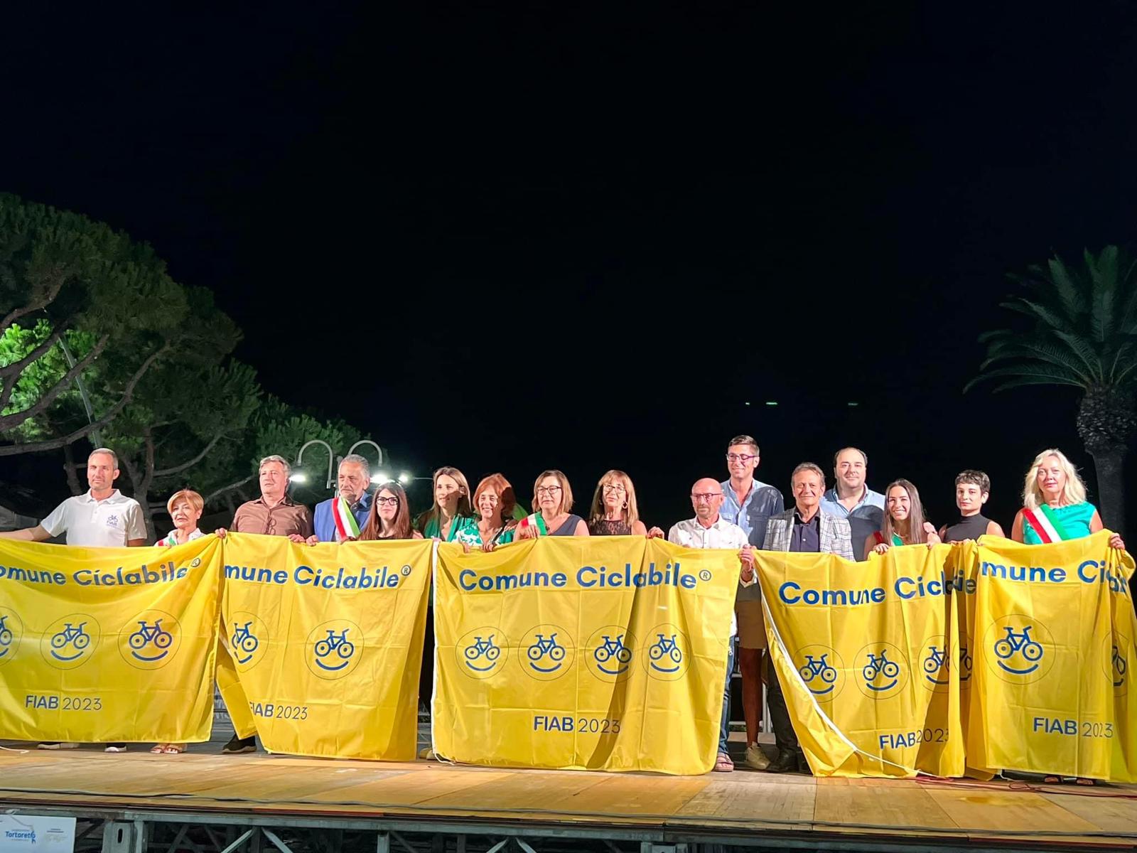 PINETO. Nella giornata di ieri, 26 luglio 2023, a Tortoreto nel corso della cerimonia organizzata dalla FIAB il Comune di Pineto ha ritirato la Bandiera Gialla 2023 alla presenza del presidente FIAB, Alessandro Tursi, e dello staff confermandosi ComuneCiclabile con 4 bikesmile. FIAB-ComuniCiclabili attribuisce ai territori un punteggio da 1 a 5, assegnato sulla base di un’analisi oggettiva dei molteplici aspetti che interagiscono con la bicicletta quale mezzo di trasporto sostenibile. Le aree di valutazione sono quattro: mobilità urbana (ciclabili urbane/ infrastrutture, moderazione traffico e velocità), governance (politiche di mobilità urbana e servizi), comunicazione & promozione, cicloturismo. A ritirare la bandiere l’assessora alla mobilità sostenibile del Comune di Pineto, Jessica Martella.