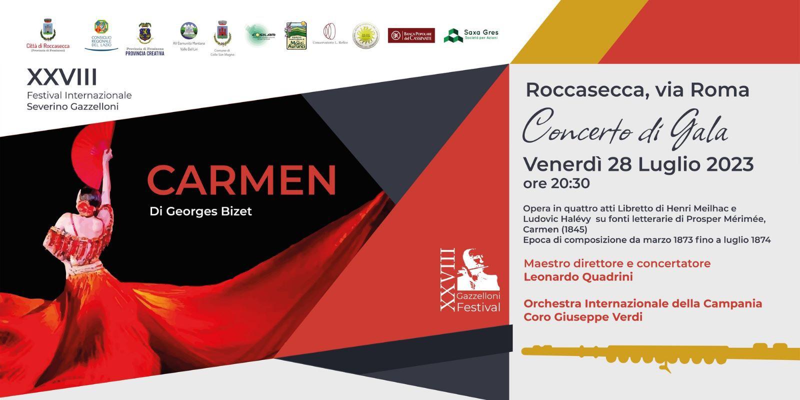 Venerdi 28 Luglio alle ore 20:30 in via Roma si terrà la serata iniziale del Festival Internazionale Severino Gazzelloni con la consueta deposizione della corona al busto del Maestro, alla Presenza delle autorità Religiose, Militari e Civili, l’omaggio musicale sarà a cura del flautista Manuel Toma, giovane talento del Conservatorio di Musica “Licinio Refice”di Frosinone, a seguire la Carmen di George Bizet, opera completa in quattro atti, diretta dal Maestro direttore e concertatore Leonardo Quadrini con l’ Orchestra Internazionale della Campania, Coro Giuseppe Verdi, Coreografie Saveria Cotroneo,Corpo di ballo Centro studi Danza Saveria Cotroneo, Ballerino Solista Giuseppe Protano .