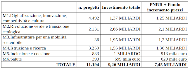 integrati – progetti generali (quasi 2 miliardi e mezzo); misure per la
