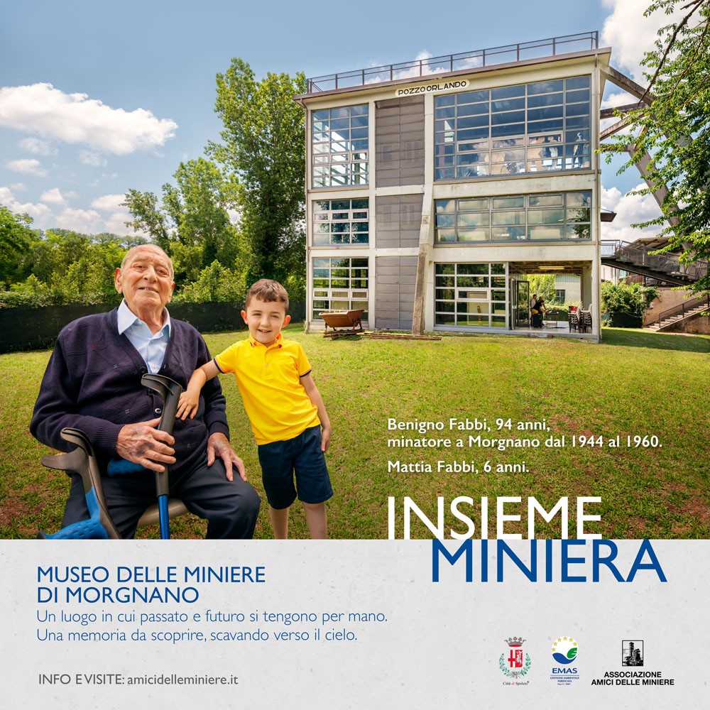 Ultimo testimone di quella che è stata una delle realtà produttive più importanti del nostro territorio dalla fine del 1800 fino all’inizio della seconda metà del XX secolo, Benigno Fabbi è stato recentemente protagonista, insieme al pronipote Mattia (6 anni), di “Insieme Miniera”, progetto fotografico di Serafino Amato, curato dal direttore dei Musei Comunali Saverio Verini.