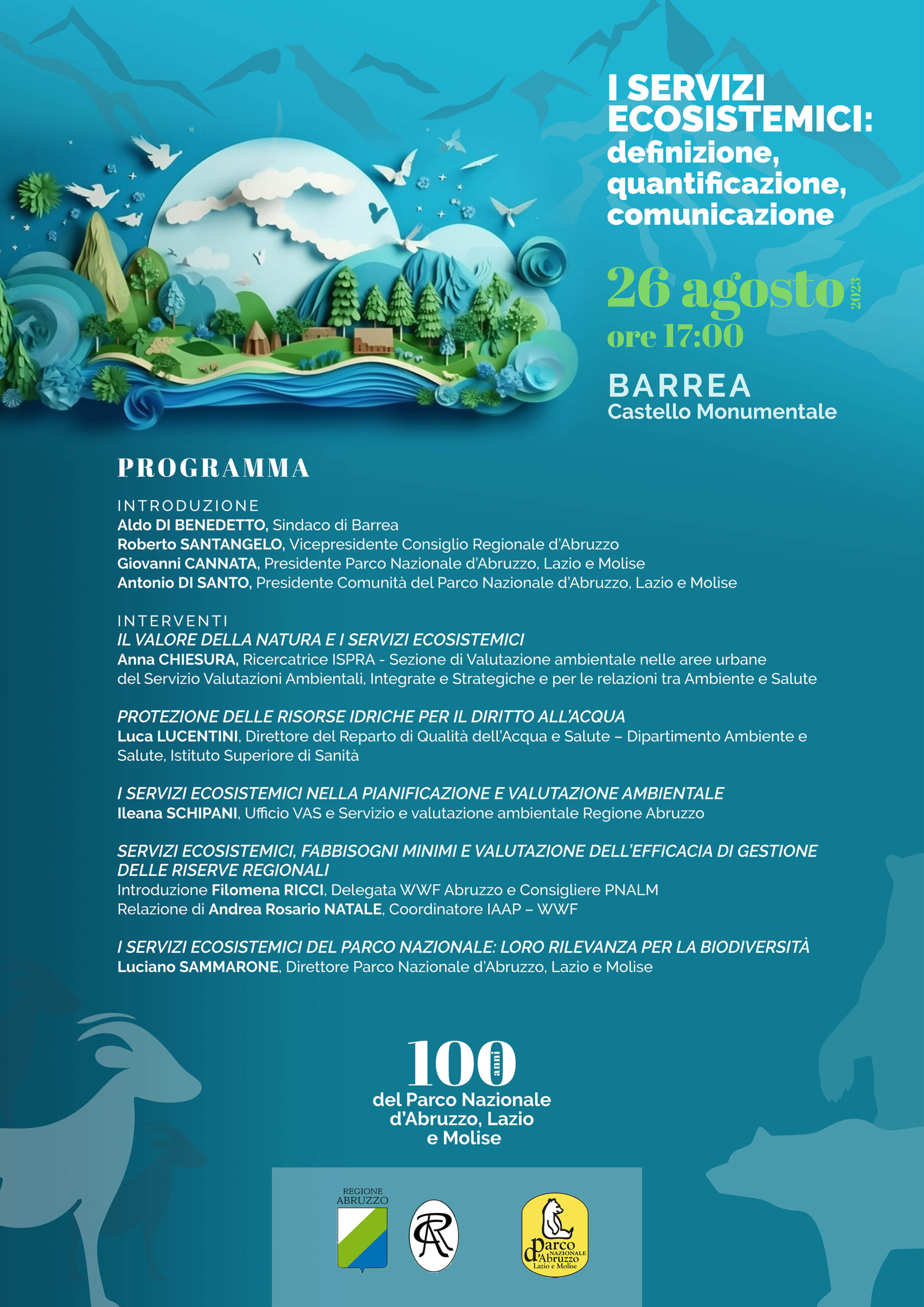 ( ACRA) – L’Aquila, 23 agosto – Risorse idriche, riserve naturali, biodiversità. Parole chiave che saranno al centro del nuovo confronto scientifico-culturale programmato in occasione delle “Celebrazioni del Centenario del Parco nazionale d’Abruzzo”. L’evento, denominato “I servizi ecosistemici: definizione, quantificazione, comunicazione”, si terrà il prossimo 26 agosto, dalle ore 17.00, al Castello monumentale di Barrea (AQ) . I lavori saranno introdotti dal sindaco di Barrea, Aldo Di Benedetto, dal vicepresidente del Consiglio regionale dell’Abruzzo, Roberto Santangelo, dal presidente Parco Nazionale d’Abruzzo, Lazio e Molise (PNALM), Giovanni Cannata e dal presidente della Comunità del Parco Nazionale d’Abruzzo, Lazio e Molise, Antonio Di Santo. A seguire gli interventi: “Il valore della natura e i servizi ecosistemici”, con Anna Chiesura, ricercatrice ISPRA – Sezione di Valutazione ambientale nelle aree urbane del Servizio Valutazioni Ambientali, Integrate e Strategiche e per le relazioni tra Ambiente e Salute; “Protezione delle risorse idriche per il diritto all’acqua”, con Luca Lucentini, direttore del Reparto di Qualità dell’Acqua e Salute – Dipartimento Ambiente e Salute, Istituto Superiore di Sanità; “I servizi ecosistemici nella pianificazione e valutazione ambientale”, con Ileana Schipani, Ufficio VAS e Servizio e valutazione ambientale Regione Abruzzo; “Servizi ecosistemici, fabbisogni minimi e valutazione dell’efficacia di gestione delle Riserve Regionali”, con l’introduzione Filomena Ricci, Delegata WWF Abruzzo e consigliere PNALM e la relazione di Andrea Rosario Natale, Coordinatore IAAP – WWF; “I servizi ecosistemici del Parco Nazionale: loro rilevanza per la biodiversità”, con Luciano Sammarone, Direttore PNALM.