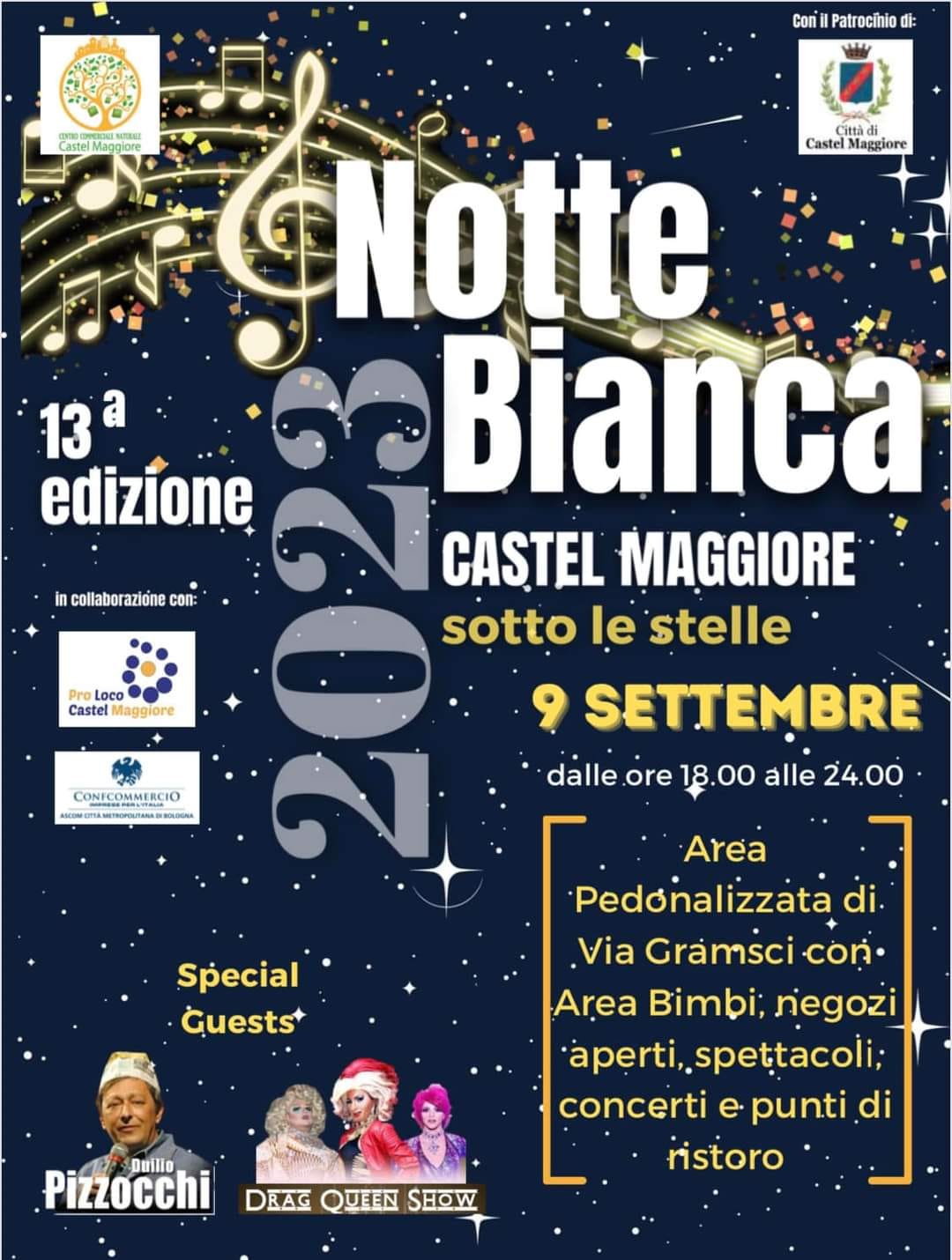 Centro commerciale naturale di Castel Maggiore, in collaborazione con Pro Loco e ASCOM Confcommercio, con il patrocinio del Comune di Castel Maggiore, presentano la 13^ edizione della Notte bianca – Castel Maggiore sotto le stelle.