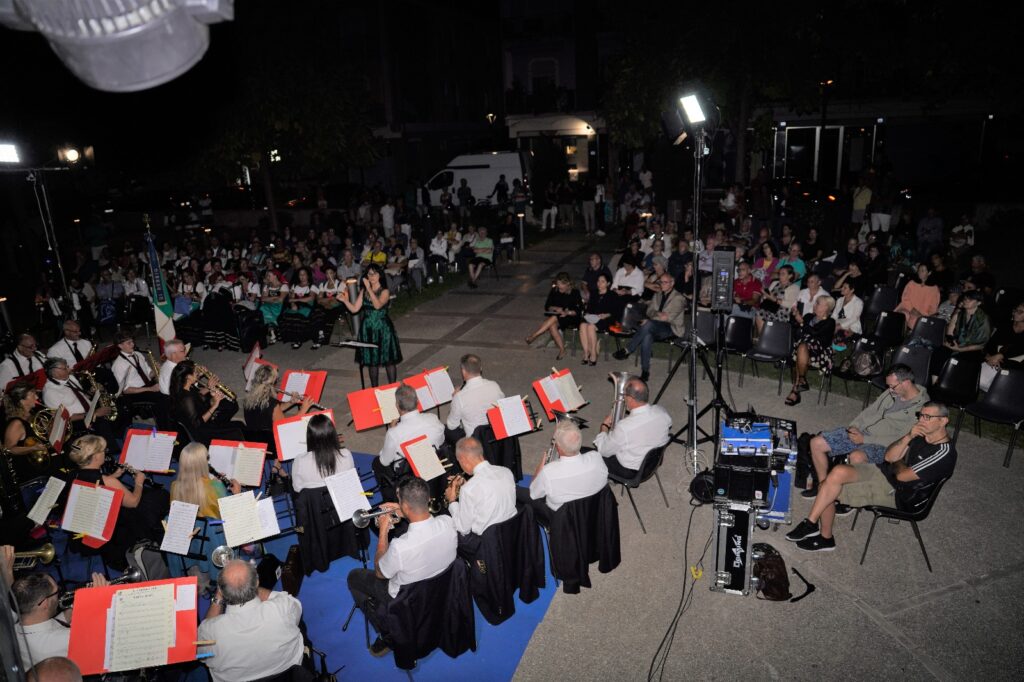 PINETO. E’ stata una serata ricca di emozioni quella che si è svolta sabato 9 settembre 2023 nel giardino di Villa Filiani dove un numeroso pubblico ha assistito al concerto del Corpo Musicale di Como Rebbio con i maestri Consuelo Meroni e Emilio Agolini. Il concerto è stato proposto gratuitamente alla città di Pineto in considerazione dei numerosi scambi culturali di ospitalità e dei rapporti di vicinanza e amicizia instaurati con le zone della città di Como e anche alla luce del gemellaggio avviato con il Comune di Olgiate Comasco. Il corpo musicale di Rebbio Como, composto da circa 35 elementi, ha proposto brani di musica classica, pop e moderna, da Ennio Morricone a Eric Clapton. L’iniziativa è stata patrocinata dal Comune di Pineto. Presenti le componenti dell’associazione pinetese Le Vie dell’Arte, le quali, in costume, al termine dello spettacolo hanno proposto il tradizionale ballo abruzzese del laccio d’amore come momento di accoglienza e scambio culturale.