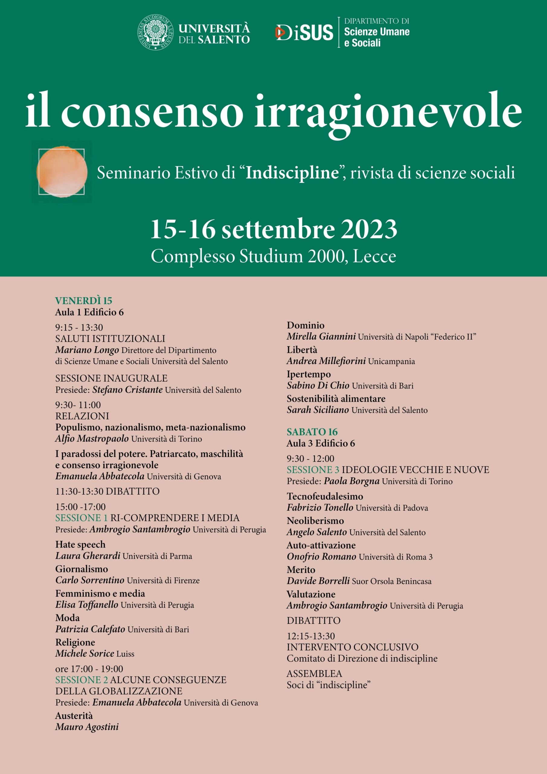 Seminario Estivo di “Indiscipline”, rivista di scienze sociali