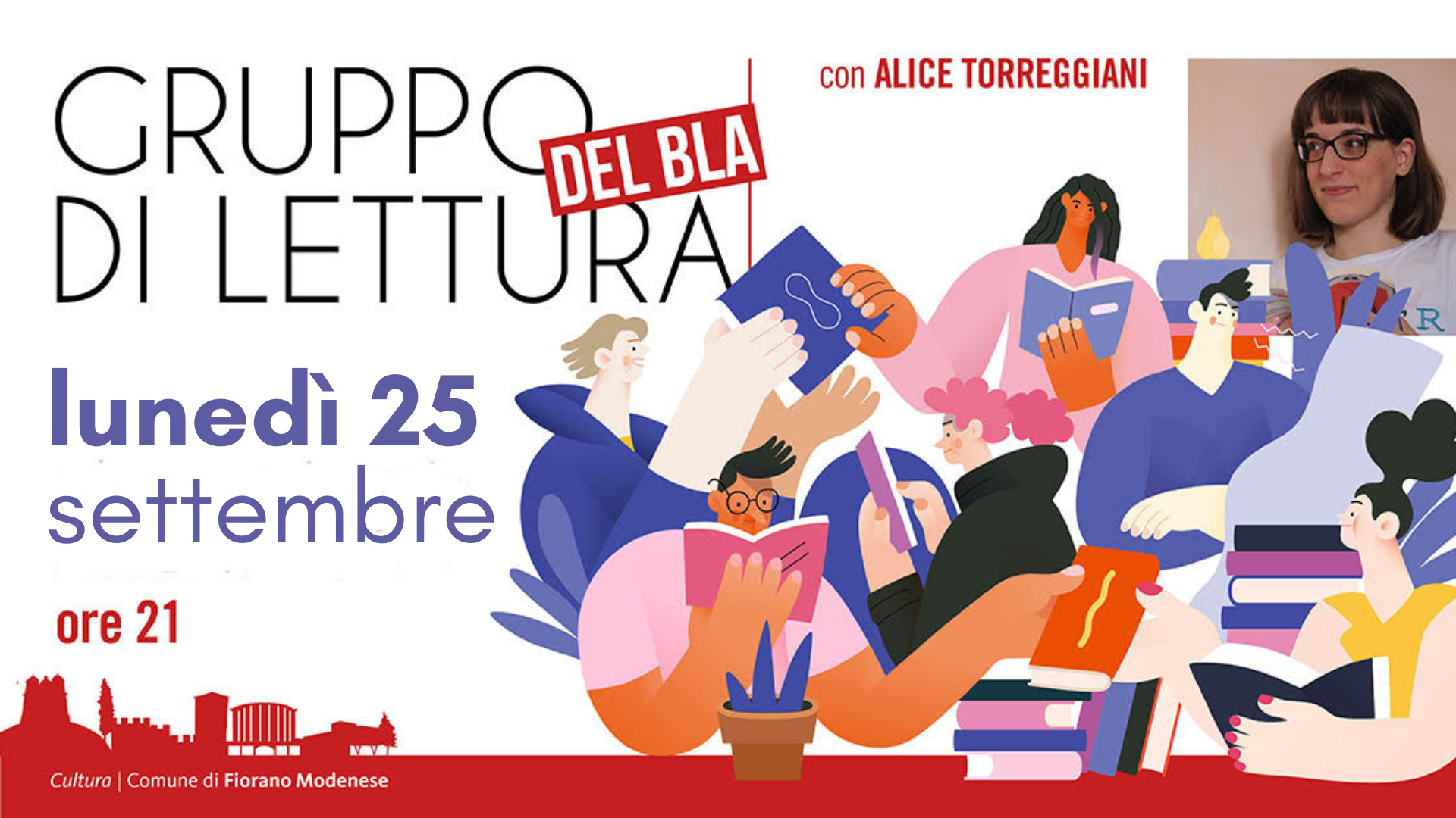 Ricomincia il Gruppo di lettura del Bla: dopo la pausa estiva la comunità di lettori torna in biblioteca a Fiorano lunedì 25 settembre alle 21. Non si parlerà di un solo libro, ma di tutte le letture che hanno accompagnato il gruppo durante i mesi estivi. Non importa di che libro si tratti, che sia un giallo oppure un saggio, un romanzo d’amore oppure un albo illustrato, ciò che conta è il desiderio di condivisione con gli altri appassionati. A condurre l’incontro sarà Alice Torreggiani, esperta e amante di libri che anche nei mesi scorsi ha accompagnato i lettori del Bla in questa esperienza in biblioteca.