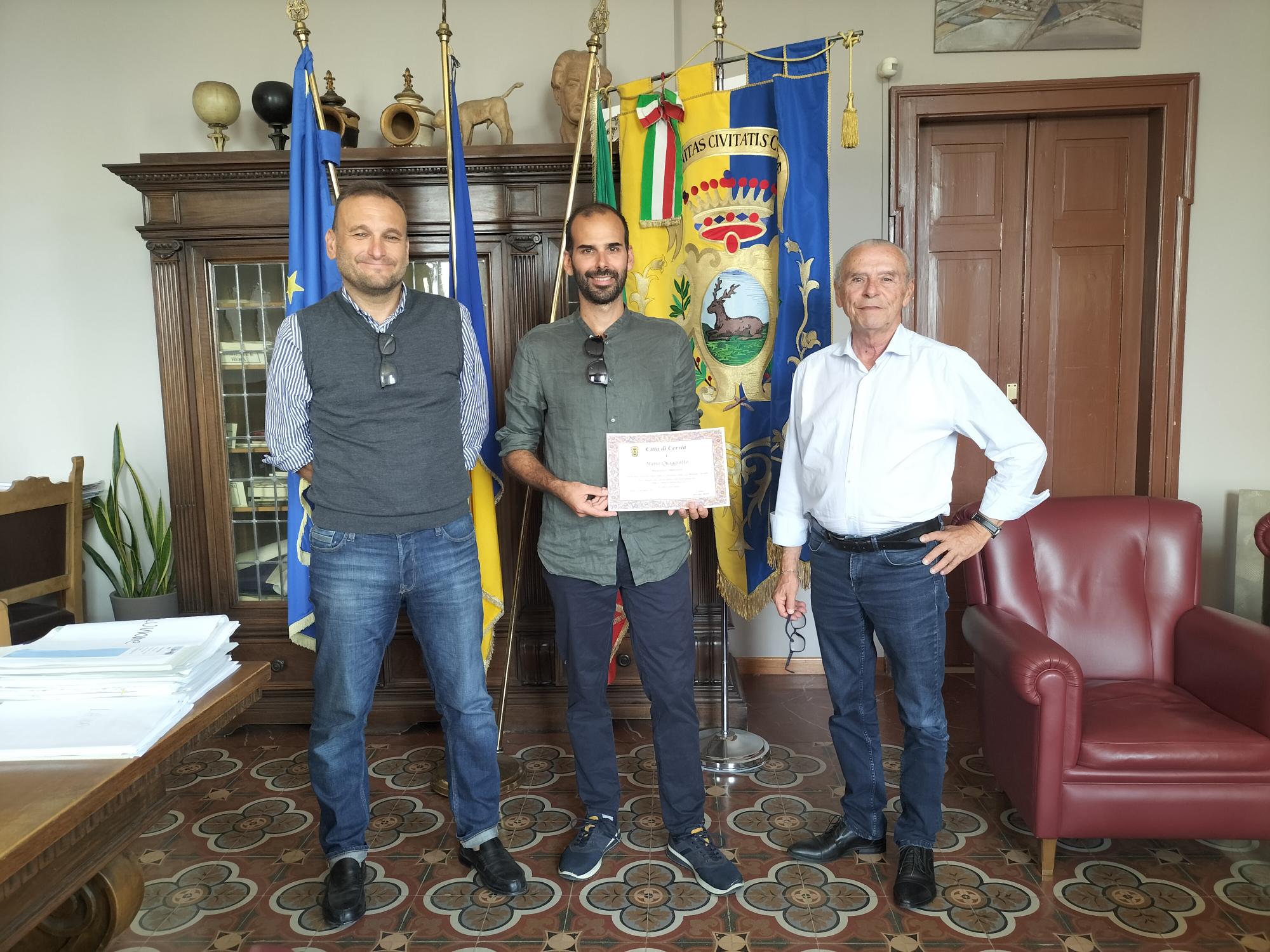 Comunicato stampa: Il sindaco Massimo Medri e l’assessore alla cultura Cesare Zavatta hanno incontrato il musicista e compositore cervese Mario Quaggiotto.