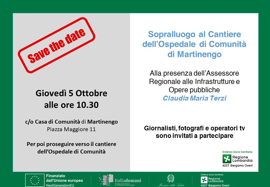 con la presente siamo ad invitarvi al Sopralluogo al Cantiere dell’Ospedale di Comunità di Martinengo,