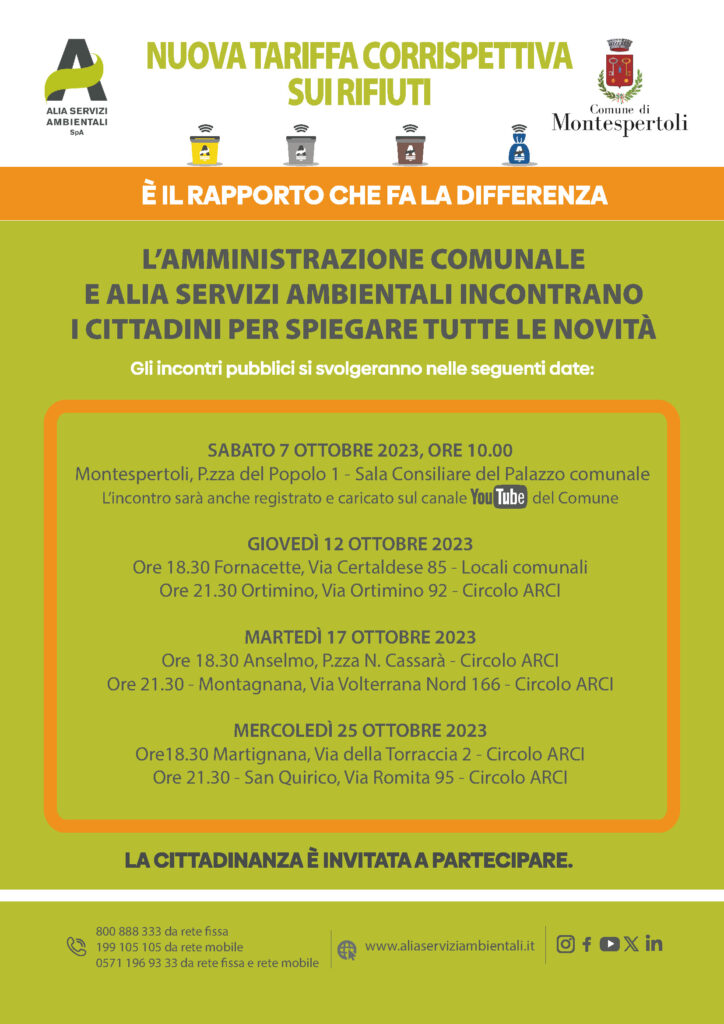 (AGENPARL) – ven 29 settembre 2023 *Montespertoli, arriva la nuova tariffa corrispettiva. Incontri con i