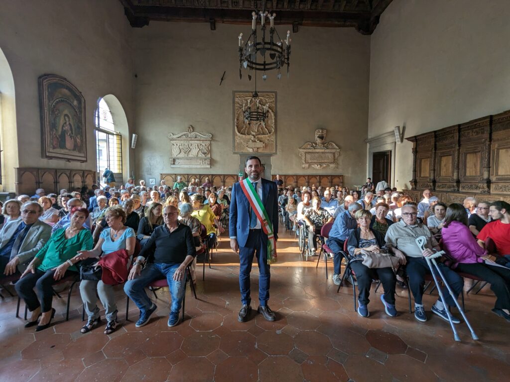 Venerdì pomeriggio nella sala Maggiore del Palazzo comunale il sindaco di Pistoia Alessandro Tomasi ha accolto le coppie pistoiesi sposate da cinquant’anni per festeggiare le Nozze d’oro con una cerimonia a loro dedicata.