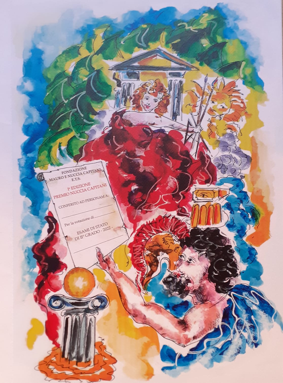 Ai 66 ragazzi e ragazze sarà consegnata una litografia personalizzata realizzata dall’artista Mauro Capitani numerata e firmata, raffigurante la dea Atena, dea della ragione, delle arti, della letteratura. Una tavolozza di vibranti e gioiosi colori che rappresenta simbolicamente l’eccellente conclusione del percorso di studi.
