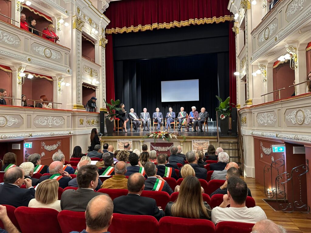 Ricostruzione post sisma, l’inaugurazione del teatro comunale di Caldarola alla presenza del presidente