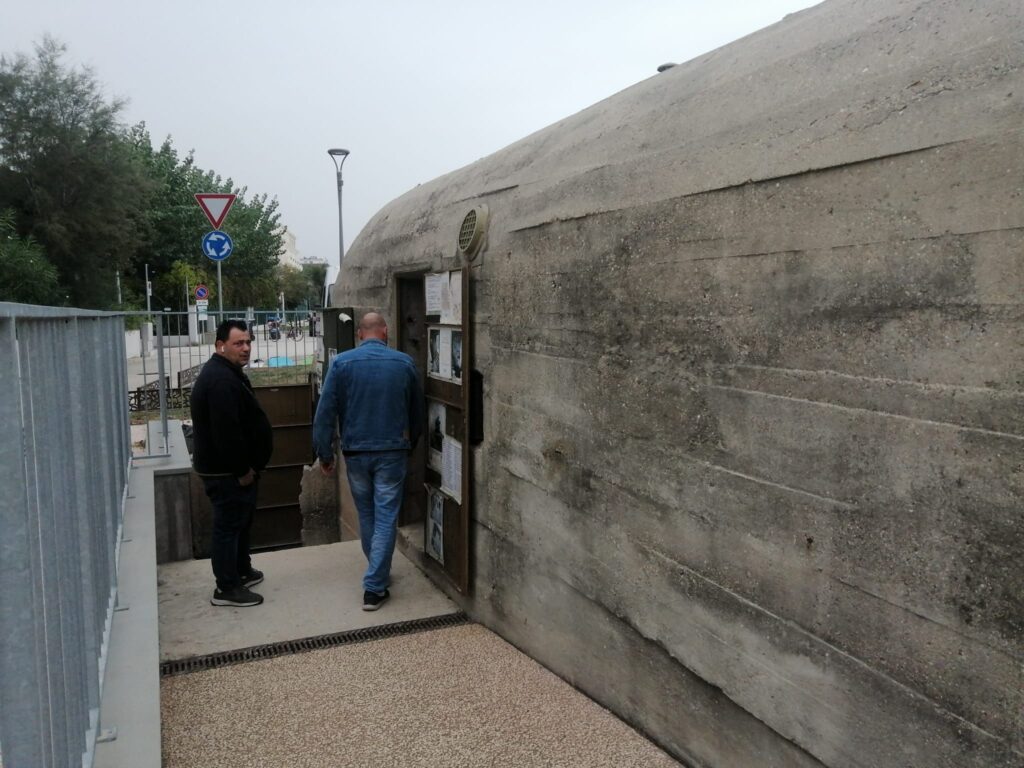 Scendendo i gradini del grande bunker, interamente restaurato ed equipaggiato dall’associazione “CRB 360°”, Jacopo rievoca il momento in cui il bunker era una struttura di comando, tra le più grandi in zona e gestiva i contatti radio con le truppe e le artiglierie circostanti. L’edificio è poi collegato da un corridoio sotterraneo lungo e stretto, ad un rifugio di minori dimensioni di tipo Tobruk utilizzato per posizionare la mitragliatrice.