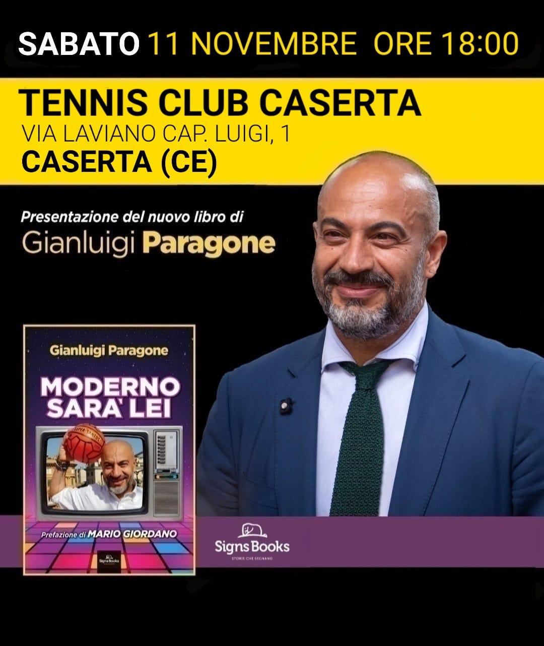 “Moderno sarà lei” è il titolo del nuovo libro di Gianluigi Paragone che sarà presentato sabato 11 novembre 2023 alle 18 presso la sede del Tennis Club Caserta di via Laviano 1.