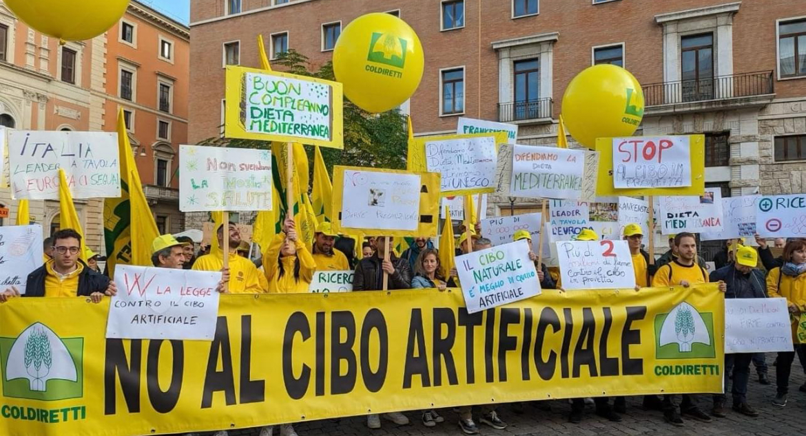 C’era anche una delegazione di agricoltori e allevatori della Basilicata in piazza a Roma in occasione del via libera definitivo dell’Aula della Camera al divieto di produrre e vendere in Italia di carne coltivata. L’Italia è il primo Paese in Europa ad introdurre questo divieto. “Siamo orgogliosi di aver contribuito come Basilicata alla petizione anti cibo sintetico voluta da Coldiretti – spiega il presidente della Coldiretti di Basilicata, Antonio Pessolani – con migliaia di firme raccolte nella nostra regione, attraverso le decine di assemblee e iniziative organizzate sul territorio lucani, l’adesione oltre che di migliaia di cittadini, anche di rappresentanti del mondo delle istituzioni, della Chiesa, del sociale. E’ un grande traguardo di cui anche noi lucani dobbiamo andare fieri, perchè l’Italia è il primo Paese ad avere applicato una norma simile. Il Made in Italy a tavola messo a rischio dalla diffusione del cibo sintetico vale quasi un quarto del Pil nazionale e, dal campo alla tavola, vede impegnati ben 4 milioni di lavoratori in 740mila aziende agricole, 70mila industrie alimentari, oltre 330mila realtà della ristorazione e 230mila punti vendita al dettaglio e 10mila agricoltori in vendita diretta con Campagna Amica. Una rete diffusa lungo tutto il territorio che – conclude Pessolani – viene quotidianamente rifornisce i consumatori italiani di prodotti alimentari che nascono da una tradizione green millenaria legata ai territori”.