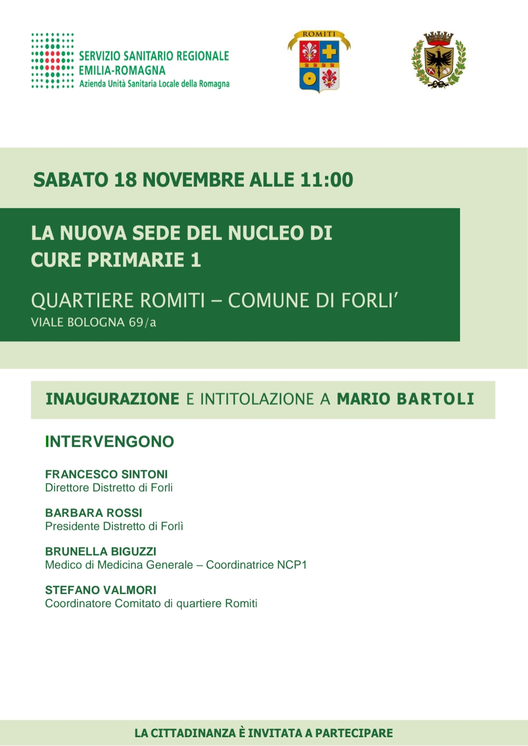 Distretto di Forlì – che presentiamo alla cittadinanza i rinnovati locali del Nucleo di Cure