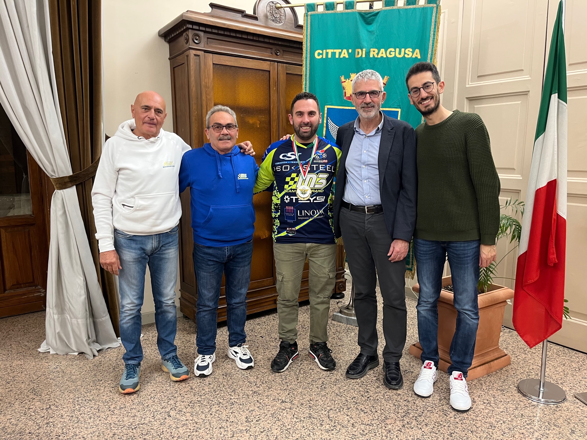 Il sindaco Peppe Cassì e l’assessore allo Sport Simone Digrandi hanno ricevuto in Municipio il campione di motociclismo Damiano Raniolo, suo padre, e il rappresentante del Team M3 Mirano-Venezia Fabio Cappuzzo.