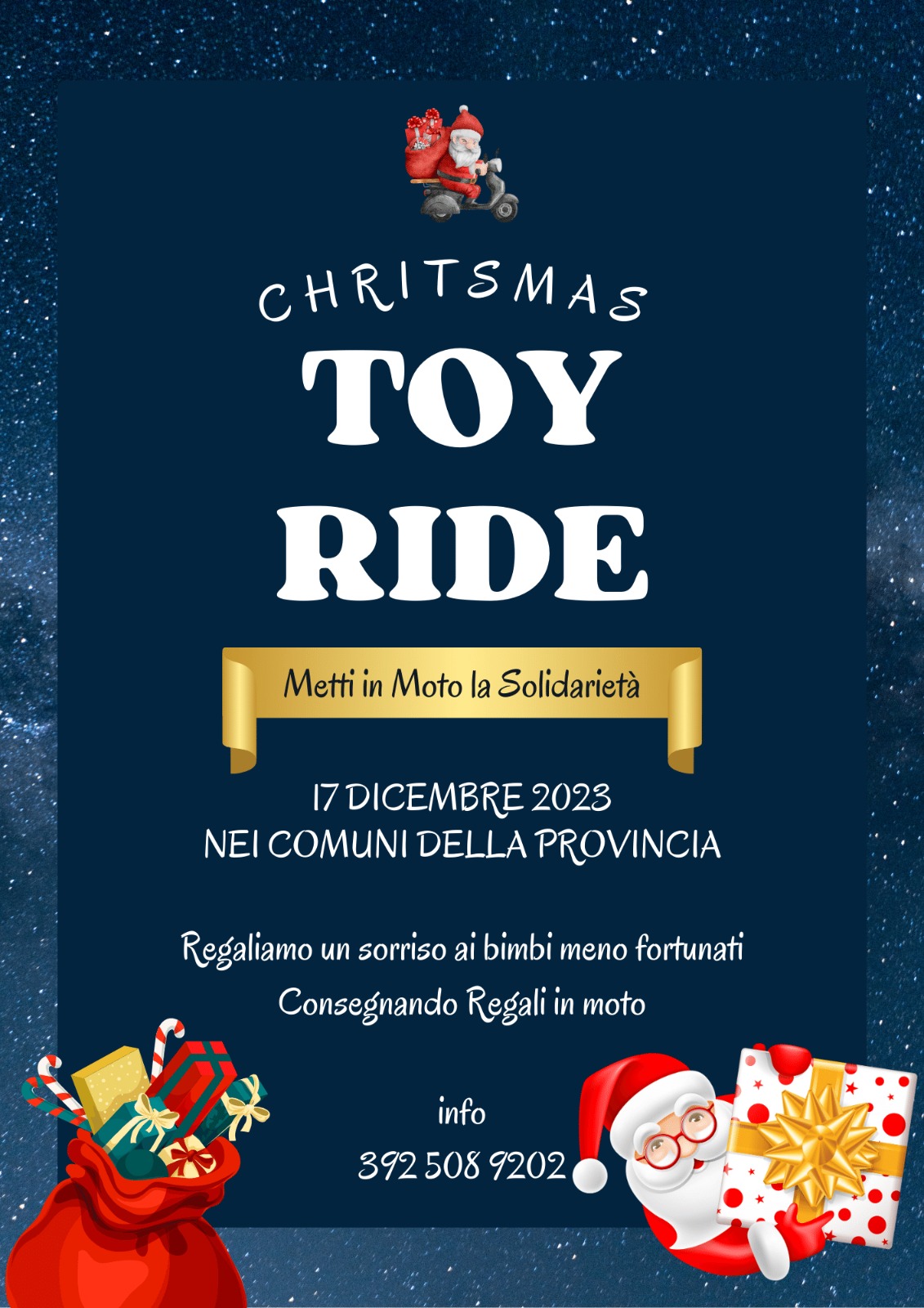 L’Amministrazione Comunale ha aderito all’iniziativa “Christmas Toy Ride – Metti in moto la solidarietà”, promossa dall’associazione Motocult di Comiso.