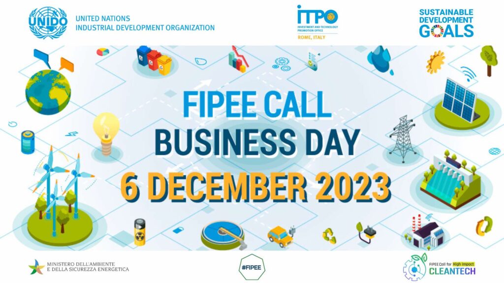 UNIDO ITPO Italy ha il piacere di invitarvi a prendere parte al “FIPEE Call Business Day”, che si terrà online mercoledì 6 dicembre 2023 dalle ore 09:30 (ora italiana) sulla Investment & Matchmaking Platform on Energy & Environment di UNIDO ITPO Italy.