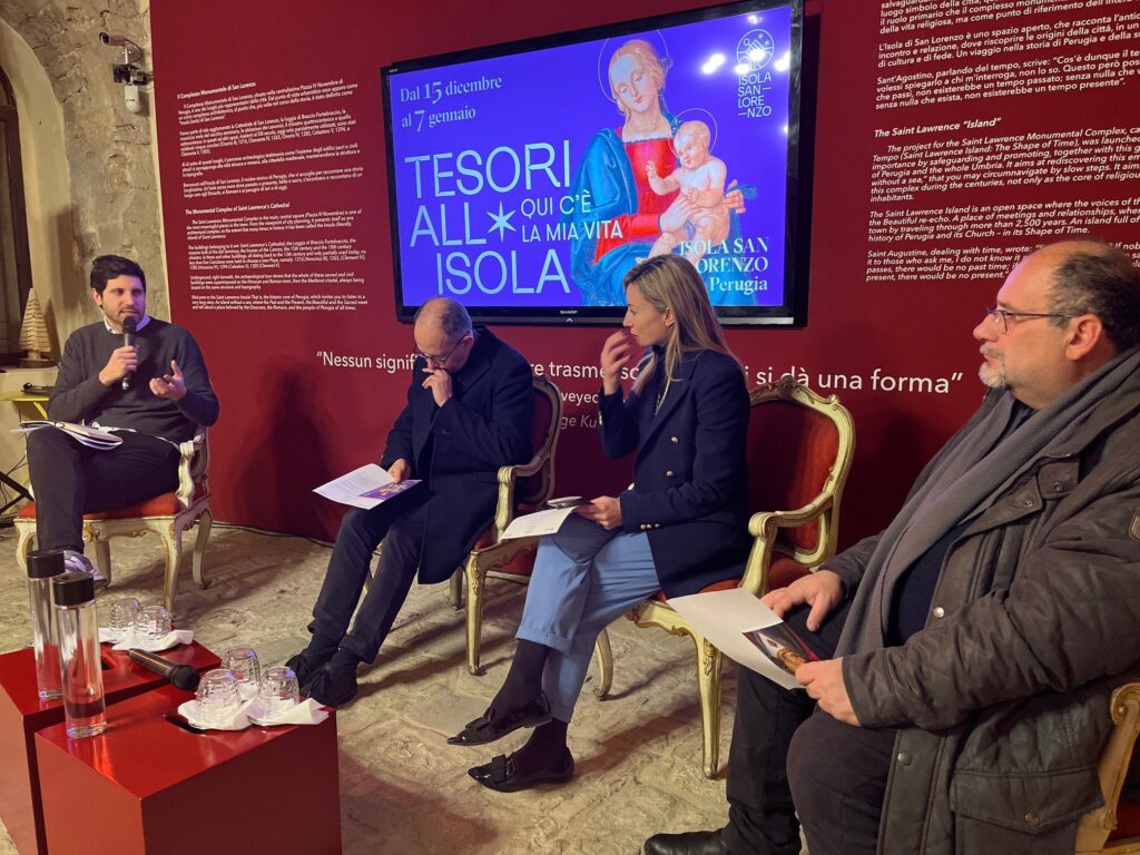 Parole chiave di speranza. Nel soffermarsi sull’esposizione temporanea “Qui c’è la mia vita”, che rientra nelle iniziative che abbiamo chiamato “Tesori all’Isola” – spiega l’architetto Polidori -, prende il nome dalle parole commosse pronunciate da Luca, barista di Pierantonio, al momento della riapertura della sua attività. All’interno del Museo del Capitolo trova quindi spazio la tela attribuita a Sinibaldo Ibi. A dialogare con l’opera cinquecentesca ci sono inoltre i lavori di due artisti contemporanei, Riccardo Secchi e Paolo Bellegrandi, che hanno accolto la nostra sfida di proporsi come mediatori del messaggio di rinascita. Alle parole chiave negative si aggiungono quindi quelle positive e portatrici di speranza: custodia, accoglienza, cura, memoria, vita, dialogo, dono, pace, nascita. Esse ci guidano alla scoperta di questa esposizione, legandosi in maniera perfettamente armoniosa al significato veicolato dall’opera di Pierantonio».
