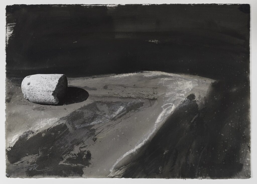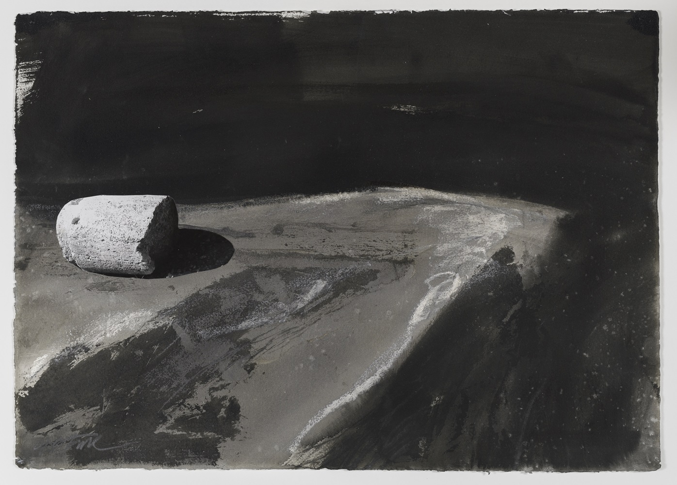La carta è il supporto scelto per imprimere una pittura velocissima che conduce lo spettatore attraverso desolati territori di pietra in cui non c’è spazio per il corpo dell’uomo, comparso nel suo lavoro solo in rare occasioni.