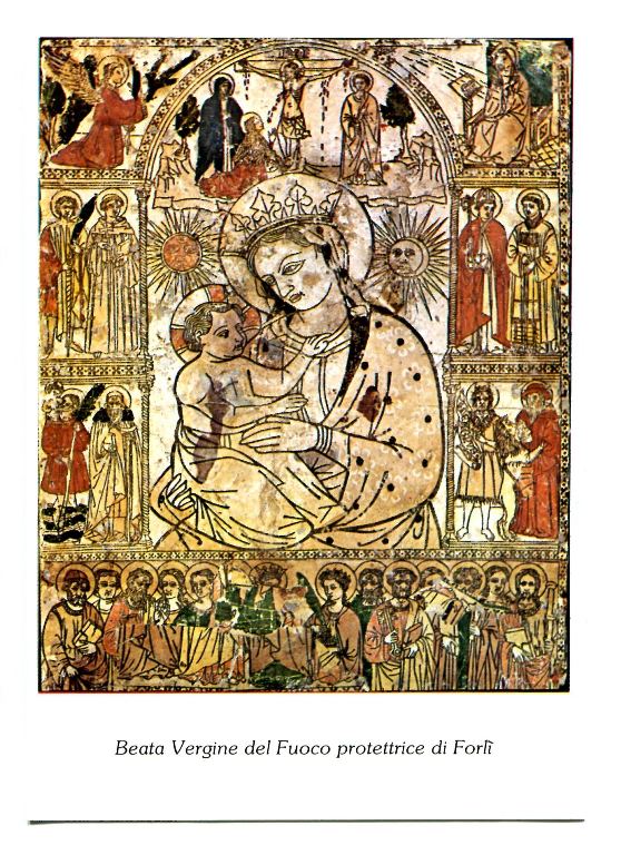 La Confraternita della Beata Vergine del Fuoco, composta dai salinari cervesi, portava in processione a Forlì in onore della Madonna del Fuoco protettrice dei salinari, già dal XVII sec., il crocifisso ligneo oggi custodito nella Chiesa del Suffragio. Un altare dedicato alla Beata Vergine del Fuoco si trovava nella chiesa di San Giorgio in Cervia vecchia. Venne in seguito trasferito nel duomo di Cervia nuova e si ha notizia che l’ultimo vescovo di Cervia, Monsignor Foschi, vi abbia lasciato in dono la sua preziosa croce pettorale.
