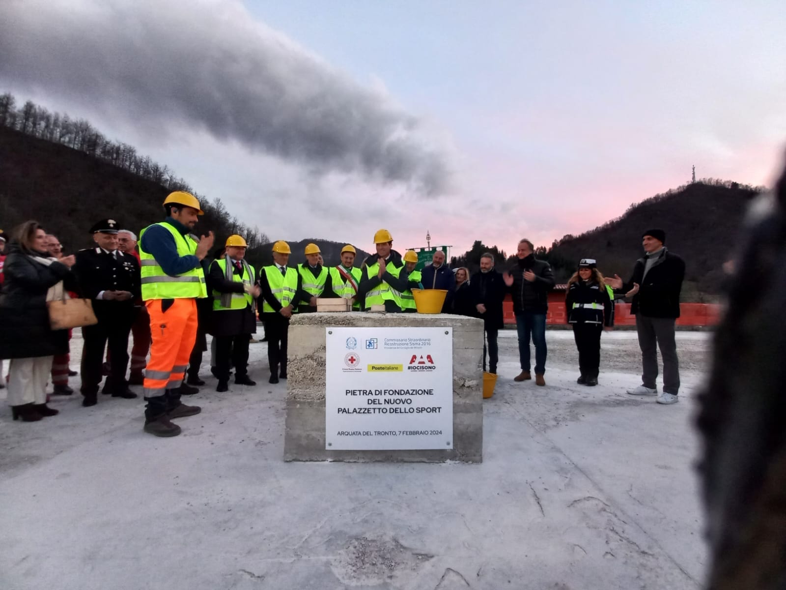 Il costo complessivo, per la realizzazione del palazzetto, è di circa 4 milioni di euro e il finanziamento è arrivato grazie alla Croce Rossa italiana, alle donazioni di Poste italiane e dell’associazione “Io ci sono” Onlus. Alla cerimonia di posa della prima pietra sono intervenuti anche il presidente della Croce rossa italiana Rosario Valastro, il prefetto di Ascoli Sante Copponi e il sindaco Michele Franchi.