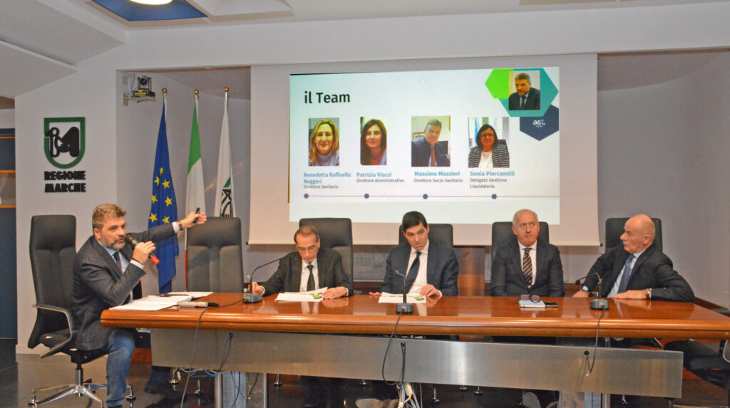 Presenti il presidente Francesco Acquaroli, il vicepresidente Filippo Saltamartini, assessore regionale alla Sanità, il sottosegretario alla presidenza della giunta Aldo Salvi, il direttore generale della AST Ancona Giovanni Stroppa.