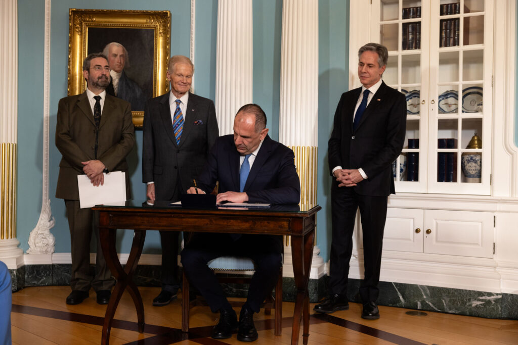 NASA Administrator Bill Nelson participated in a signing ceremony Friday with Greece’s foreign minister, Giorgos Gerapetritis, as his country became the 35th country to sign the Artemis Accords.