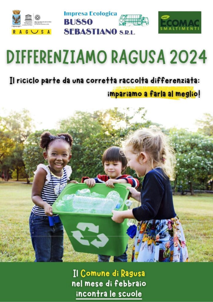 Dal mese di febbraio prende avvio il progetto “Differenziamo Ragusa” promosso dal Comune di Ragusa in collaborazione con l’Impresa Ecologica di Busso Sebastiano E.C. Sas. Un progetto per sensibilizzare i più giovani sulla corretta separazione dei rifiuti, con la partecipata collaborazione e messa a punto di attività laboratoriali di singoli o di gruppi da parte delle scuole. Il progetto è stato fortemente voluto e sostenuto dall’assessora all’Istruzione Catia Pasta e dall’assessore all’Ambiente Mario D’Asta ritenendo la divulgazione e il coinvolgimento da parte dei più piccoli sul tema, la giusta via da percorrere per coinvolgere una comunità di maggiore respiro.