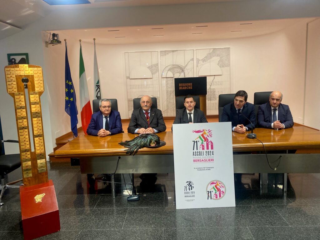 Dal 2 al 5 maggio prossimi si terrà in Ascoli Piceno il 71º Raduno Nazionale dell’Associazione Nazionale Bersaglieri (ANB). La manifestazione si svolgerà secondo un fitto programma che comprende cerimonie militari e civili, esibizioni di Fanfare e manifestazioni di carattere socioculturale, musicali e sportive. L’iniziativa è stata presentata questa mattina ad Ancona nella sede della Regione Marche a Palazzo Raffaello, nel corso di una conferenza stampa alla quale sono intervenuti il presidente della Regione Marche Francesco Acquaroli, il sindaco di Ascoli Piceno Marco Fioravanti, il presidente dell’Associazione Nazionale Bersaglieri Gen. Ottavio Renzi, il presidente della Camera di Commercio delle Marche Gino Sabatini e Luigi Contisciani presidente del Bim Tronto.