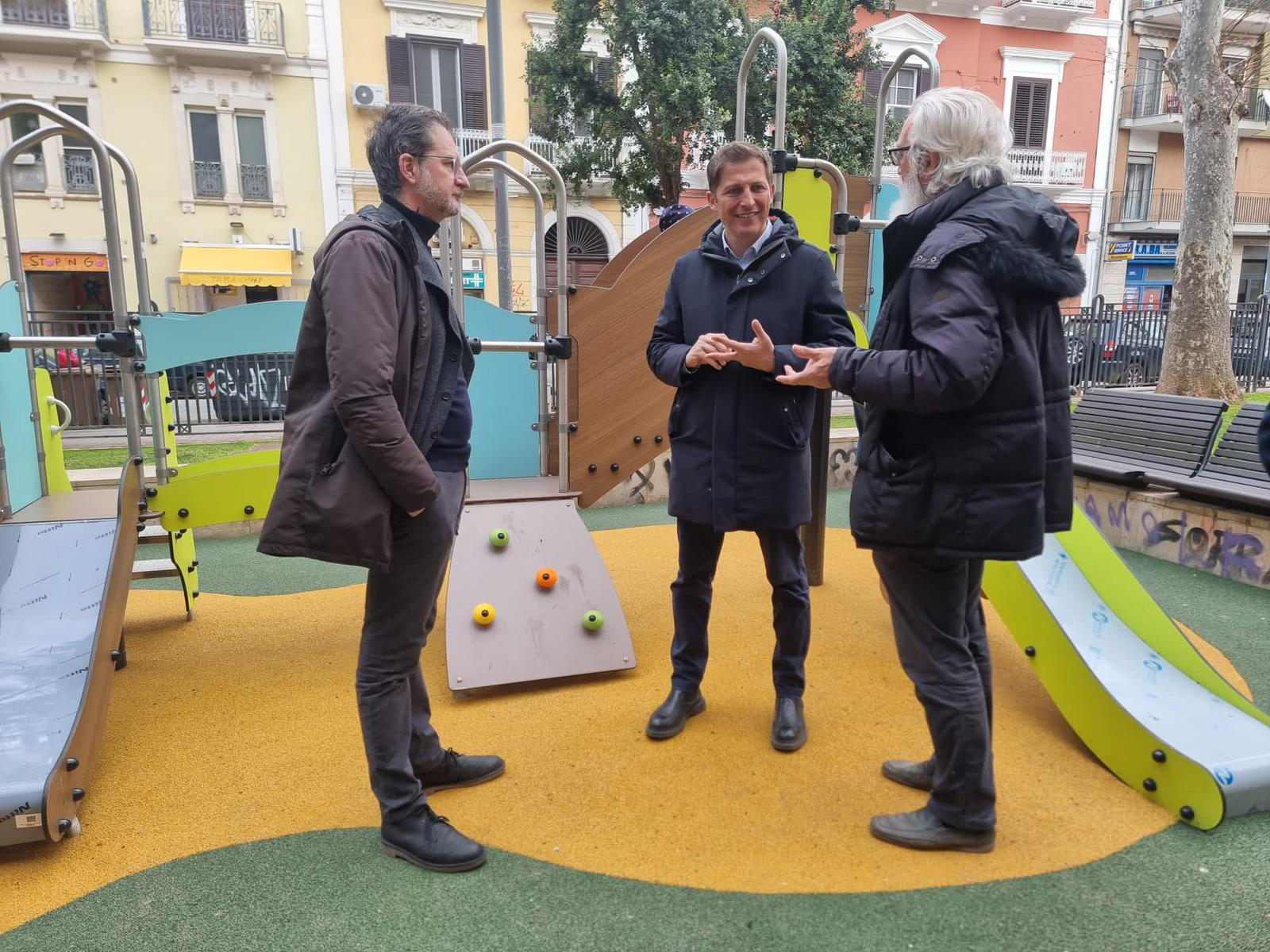 Questa mattina l’assessore ai Lavori pubblici Nicola Mele e il presidente del Municipio I Lorenzo Leonetti sono intervenuti all’inaugurazione della nuova area ludica ultimata nel giardino di piazza Balenzano, a Madonnella.