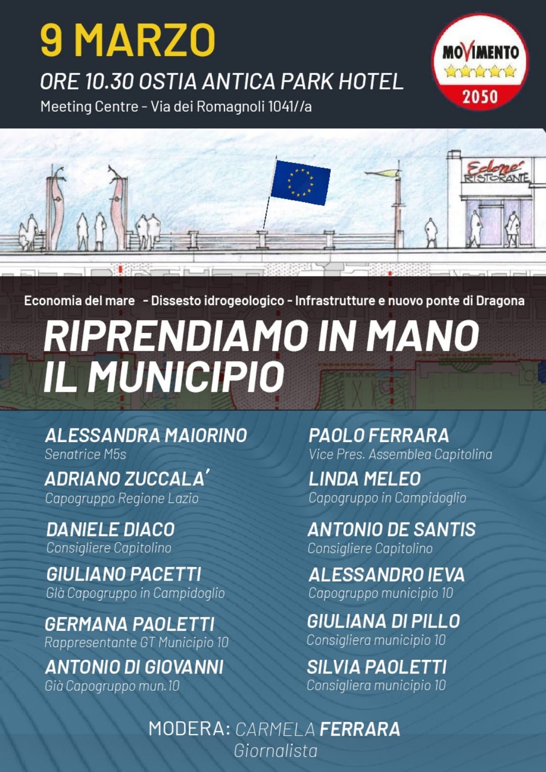 Lo facciamo con l’incontro ‘Riprendiamo in mano il Municipio’, sabato 9 marzo alle 10:30 all’Ostia Antica Park Hotel, viale dei Romagnoli 1041/a. Parleremo di come migliorare l’economia, le infrastrutture, le condizioni idrogeologiche della nostra terra, con il contributo di tante persone che da anni si battono per il Litorale e il suo entroterra. Ci saranno personalità dal Senato, dalla Regione e da Roma Capitale, ma anche le parti sociali che vivono questa terra e si impegnano ogni giorno per essa. Le nostre porte sono aperte a tutti cittadini che vogliono un futuro migliore per il Mare di Roma”.