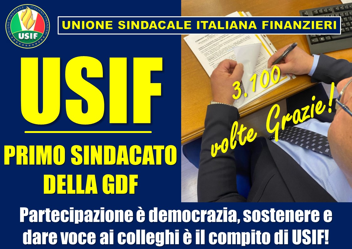 “Oggi l’Unione Sindacale Italiana Finanzieri (USIF) ha finalmente firmato
