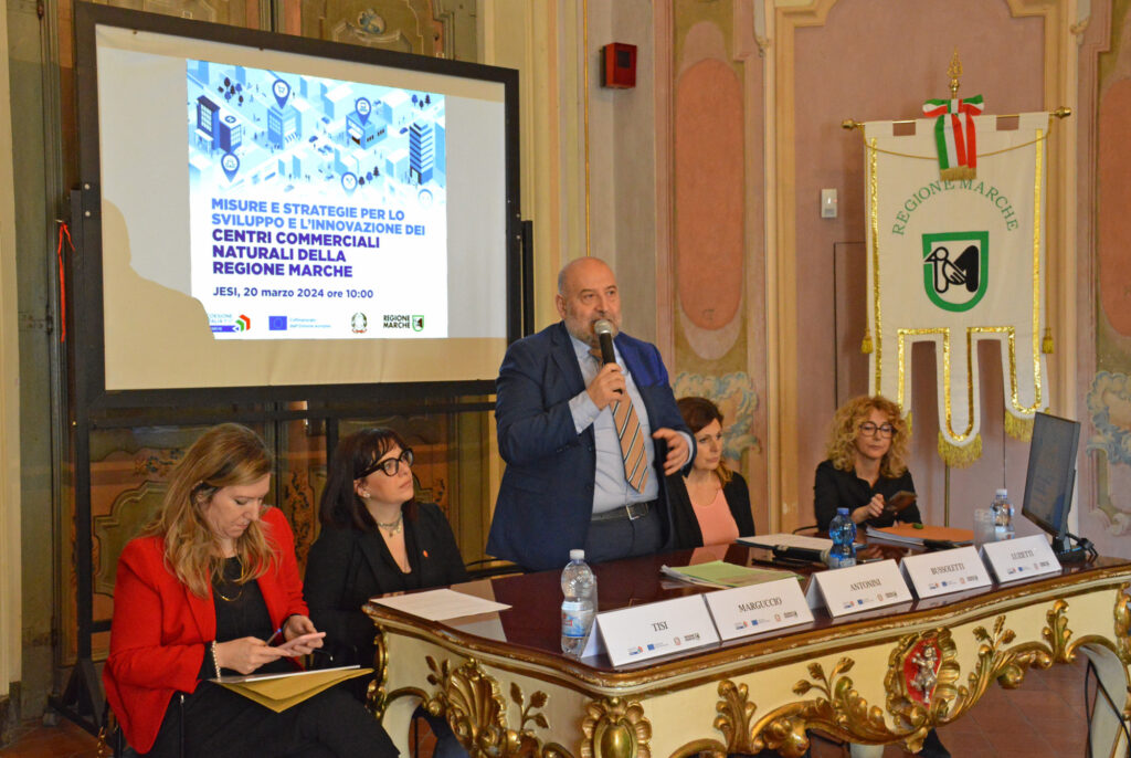 (AGENPARL) - Roma, 20 Marzo 2024(AGENPARL) – mer 20 marzo 2024 Misure e strategie per lo sviluppo e l’innovazione dei Centri commerciali naturali delle Marche, attraverso un bando Fesr 2021-2027, presentato a Jesi dall’assessore al Commercio Andrea Maria Antonini, presso la Galleria della Pinacoteca di Palazzo Pianetti.