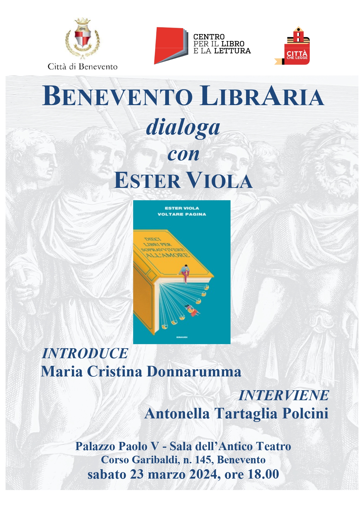 Benevento, 22 marzo 2024 – Domani, sabato 23 marzo 2024, alle ore 18:00, presso la sala dell’antico teatro di Palazzo Paolo V, la rassegna “Benevento LibrAria” accoglie una sannita e beneventana doc, Ester Viola, avvocato e scrittrice di successo.