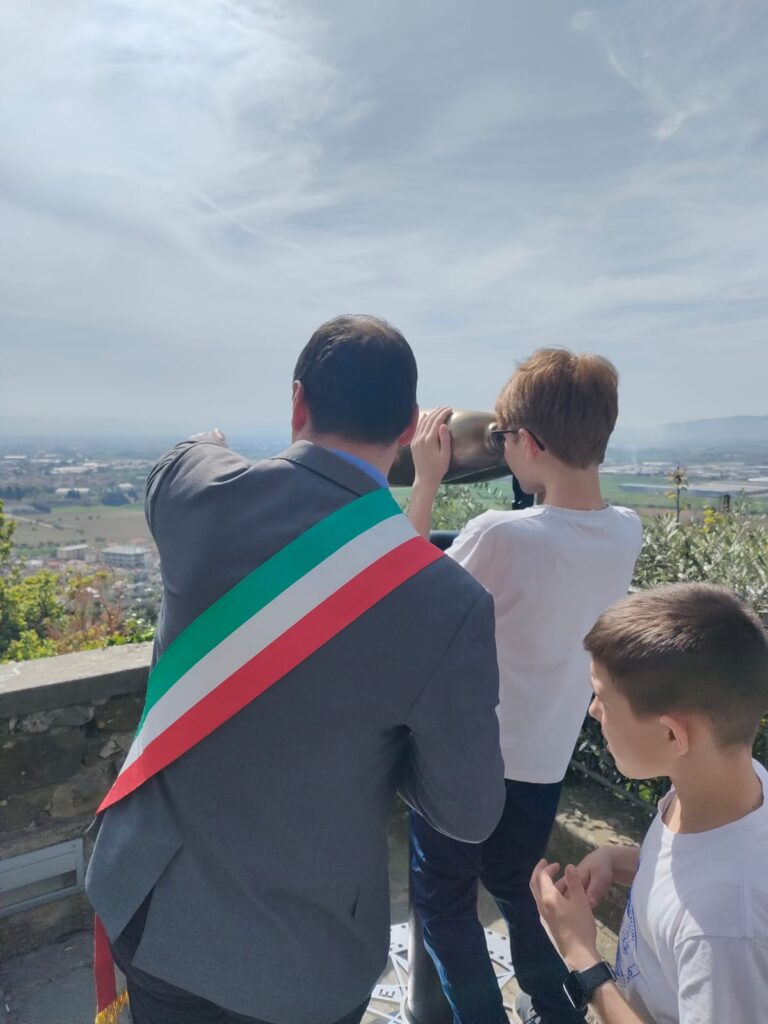 È stato inaugurato questa mattina il binocolo panoramico, installato dal Comune di Montemurlo sul belvedere che si trova in piazza Castello alla Rocca. Un punto panoramico di particolare pregio e bellezza che il Comune ha ritenuto opportuno valorizzare attraverso l’installazione di questo strumento ottico che consente di apprezzare dall’alto Montemurlo e non solo. La visuale del binocolo infatti spazia su tutta la piana, da Pistoia, a Prato, al Montalbano per arrivare, nelle giornate particolarmente limpide, a vedere il centro di Firenze con la cupola del Brunelleschi e il campanile di Giotto. « Il binocolo è un’occasione per promuovere il nostro territorio e le sue bellezze- ha detto il sindaco Simone Calamai – Un modo per “mettere a fuoco” Montemurlo, per mettere al centro del nostro sguardo il territorio così bello ma anche tanto fragile. Un territorio che merita ogni giorno la nostra attenzione e la nostra cura». All’inaugurazione erano presenti i rappresentanti di numerose associazioni cittadine che lavorano ogni giorno alla valorizzazione, difesa e conoscenza del territorio montemurlese e delle sue ricchezze: la Vab Montemurlo, l’associazione Il Borgo della Rocca, il gruppo Alpini Montemurlo, il gruppo trekking la storia Camminata, il gruppo fotografico Zoom – zoom. I bambini della classe quinta della scuola primaria paritaria “Ancelle del Sacro Cuore” di Montemurlo hanno aiutato il sindaco Simone Calamai a scoprire ed inaugurare il binocolo panoramico e sono stati i primi ad ammirare il paesaggio. Il binocolo è ad accesso libero e rappresenterà un’attrattiva in più per visitare il Borgo della Rocca, una delle tappe del Cammino di San Jacopo in Toscana, dal quale passano ogni giorno tanti pellegrini e camminatori:« Il binocolo sarà una buona occasione per i camminatori e per i visitatori, montemurlesi e non solo, per prendersi una pausa e stare qualche minuto ad ammirare il panorama nell’oasi di pace del borgo della Rocca», conclude l’assessore alla promozione del territorio, Giuseppe Forastiero.