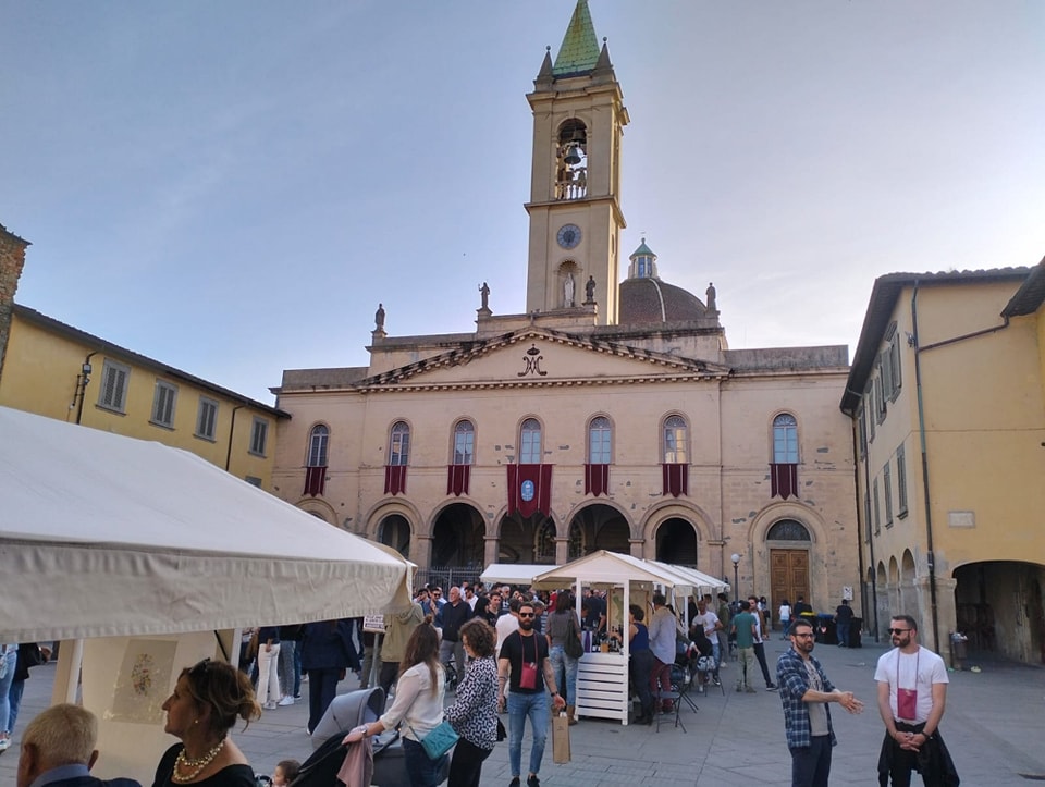 La piazza vestita in verde con l’allestimento del prato con olivi secolari e botti ha colpito tutti i presenti. Un’immagine diversa di piazza Cavour, di grande convivialità. Elegante piazza Masaccio, con gli stand delle cantine collocate tra Palazzo d’Arnolfo e la Basilica.