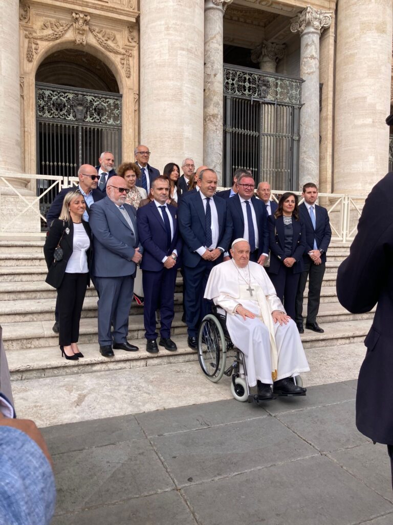 Guidati da Marino Fardelli, coordinatore nazionale, hanno consegnato al Papa un dono in ricordo dell’incontro di oggi.