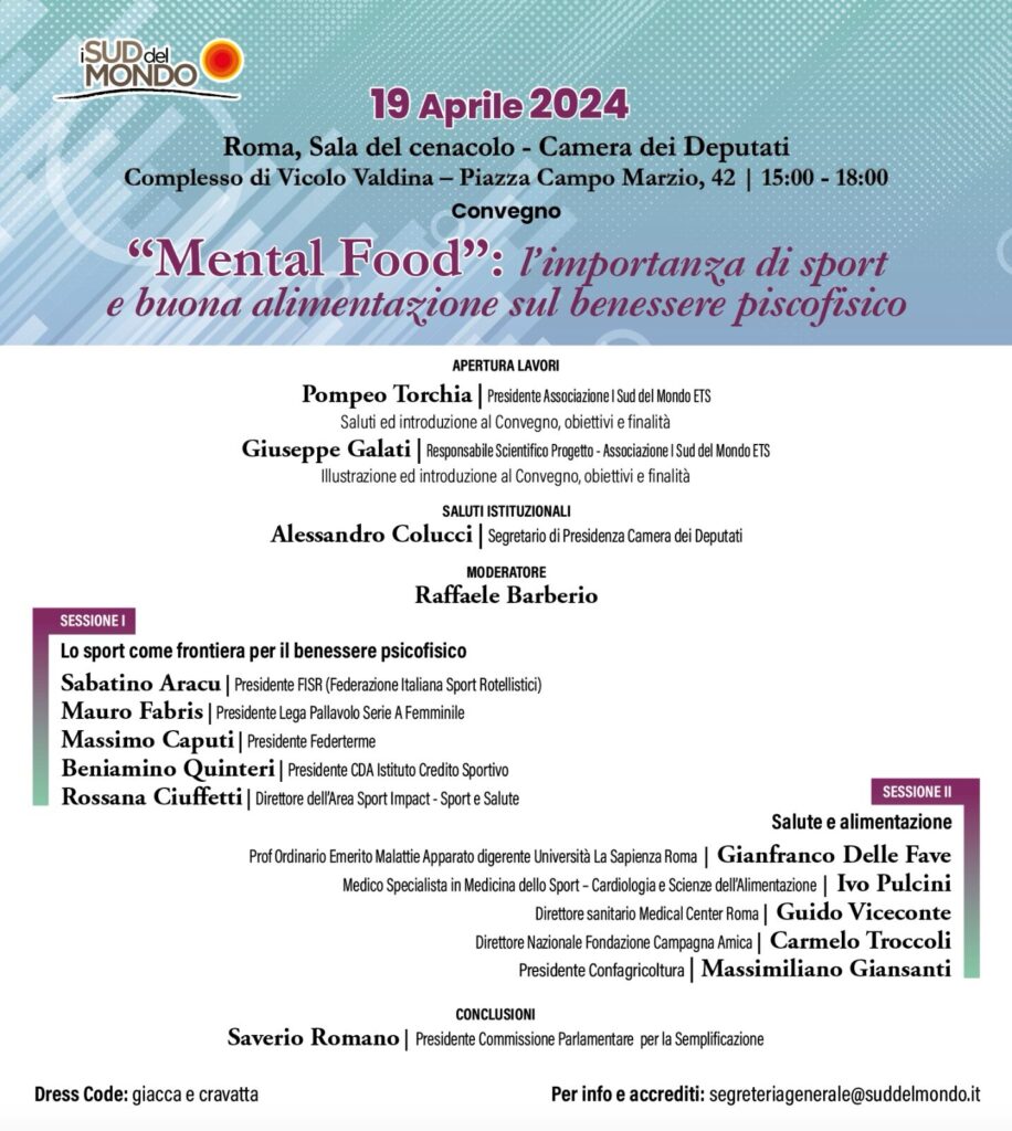 Alle 15 di oggi, nella Sala del Cenacolo del Complesso di Vicolo Valdina si svolge il convegno “Mental food: l’importanza di sport e buona alimentazione sul benessere psicofisico”. Interviene il segretario di presidenza, Alessandro Colucci.