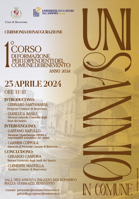 Benevento, 19 aprile 2024 – Il Comune di Benevento e l’Università degli Studi del Sannio si uniscono in un progetto per la formazione continua dei dipendenti comunali. Il primo corso di formazione, intitolato “UNISANNIO in Comune”, rappresenta un importante passo avanti nella promozione della crescita professionale e nell’elevazione delle competenze nel settore pubblico.