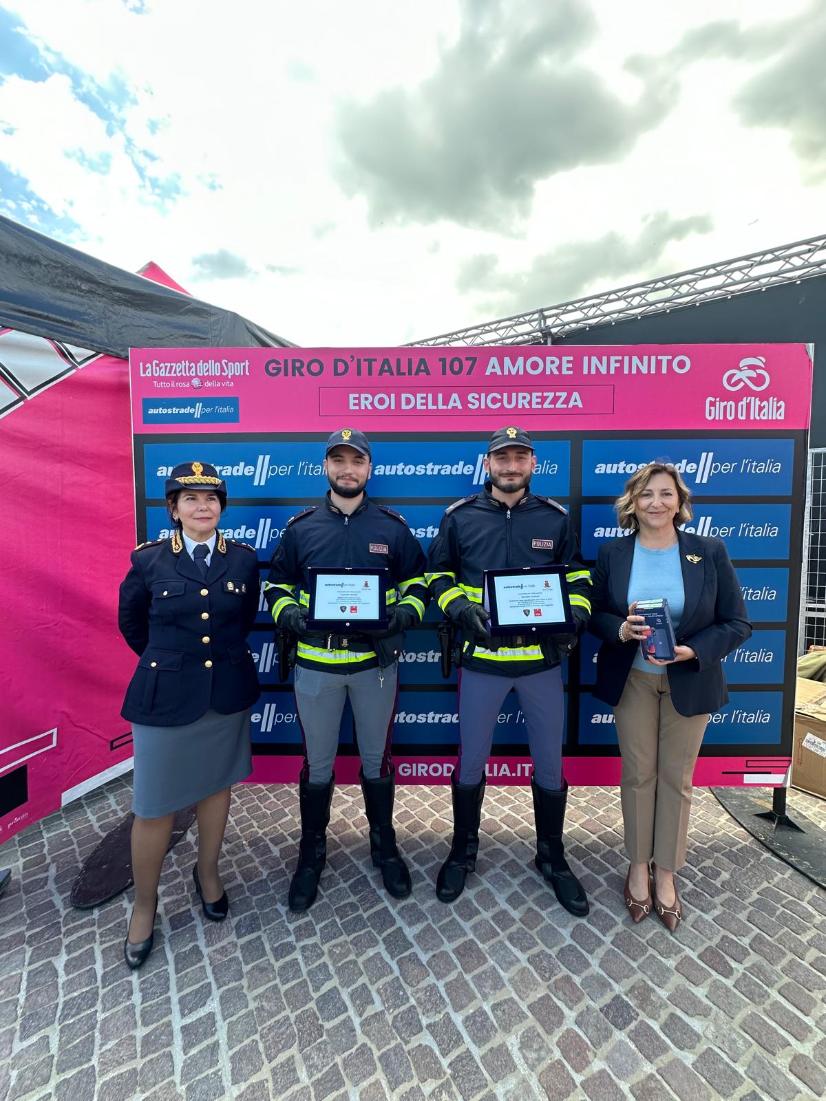 Oggi, prima della partenza di Riccione, si sono svolte le premiazioni degli “Eroi della Sicurezza”, iniziativa giunta alla tredicesima edizione e nata dalla collaborazione tra Polizia di Stato e Autostrade per l’Italia, per valorizzare l’operato degli agenti e degli addetti autostradali che ogni giorno presidiano la viabilità sulle arterie ad alto scorrimento lungo il Paese.